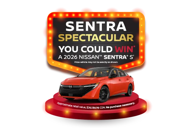 *NO PURCHASE NECESSARY. Subject to Official Rules at https://sentra-spectacular.nissangiveaway.ca/official-rules, including a list of participating dealers and how to enter without visiting a participating dealer. The contest ends at 11:59:59 P.M. AST on December 31, 2025. Open to legal Canadian residents who reside in the provinces of Nova Scotia, New Brunswick, and Newfoundland and Labrador, and are of the age of majority in their respective provinces at the time of entry. To enter, scan the QR Code or enter the website domain found on any Contest advertisement and complete the entry form. One (1) Prize (the "Prize") available to be won consists of a 2026 NISSANTM Sentra® S vehicle in Energetic Ember with an approximate retail value of $26,086.96 CDN. The odds of winning depend on the total number of eligible entries received during the Contest Period. A random draw will be held on January 12, 2026. The selected entrant must correctly answer a mathematical skill-testing question and complete a Declaration and Release of Liability Form.